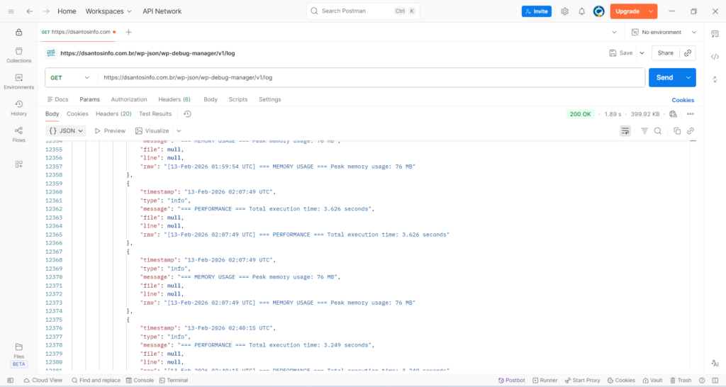 Monitore o debug.log em tempo real diretamente no painel ou via API, permitindo detecção imediata de falhas e aceleração do diagnóstico.